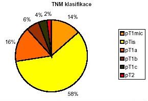 181 pacientek prodělalo chir. výkon, ICA byl zjištěn u 52 pacientek, CIS u 90, atypie, bez malignity u 19, benigní změny u 20. U dalších 76 byl chir.výkon indikován, ale neznáme def. histologii. 14 pacientek se rozhodlo doporučený chir. výkon nepodstoupit. Zastoupení velikosti tumorů v definitivní histologii ukazuje následující graf.