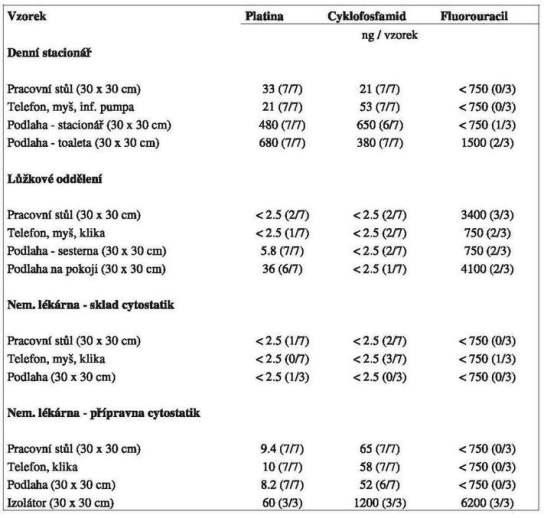 fluorouracil) ve sterech pracovního prostředí. Na třech vybraných