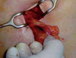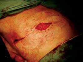 Obr. 24: Kůži šetřící mastektomie, sutura perialeorálního řezu![]() |