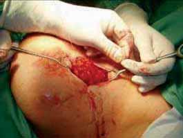 Obr. 21: Kůži šetřící mastektomie, uvolňování laloku![]() |