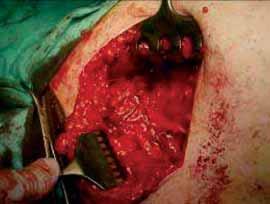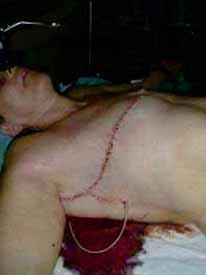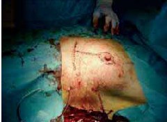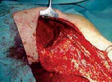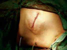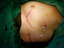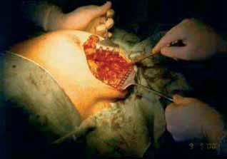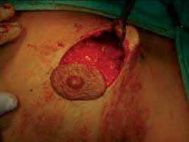 Obr. 17: Mastektomie Po ukončení výkonu následuje sutura rány, pokud je správně zvolena velikost laloků, neměla by činit obtíží.