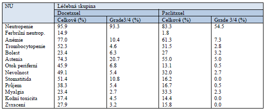 Tab.2: Porovnání toxicity docetaxelu a paklitaxelu.