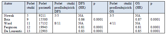 Tab.5: Přehled nejvýznamnějších metaanalýz hodnoticích postavení taxanů v adjuvantní léčbě.