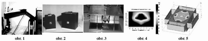 Pro regionální hypertermii je zapotřebí z důvodu vyšší hloubky ohřevu použít nižších frekvencí (70 MHz). Rovněž je zapotřebí navrhnout aplikátor, který umožní fokusovat absorbovaný výkon do oblastí hlouběji uložených. To je vyřešeno systémem více zářičů umístěných kolem pacienta, což umožní skládat jednotlivé příspěvky vyzářeného výkonu podobně jako příspěvky z více polí při radioterapii. V našem případě testujeme dvě varianty. Jednak systém čtyř vlnovodných aplikátorů (obr. 5) a jednak systém osmi rezonančních smyček. V současné době máme za pomocí simulátoru elektromagnetického pole provedeny výpočty, které odpovídají původním teoretickým předpokladům.