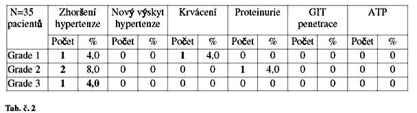 zhoršení hypertense na maximálně grade 2. Na rozdíl od uvedených