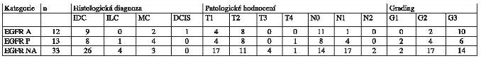 Histopatologická a klinická data shrnují tabulky 1 a 2.