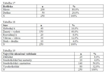 Základný súbor respondentov tvorili pacienti ošetrovaní v ambulantnej forme chemoterapii v OÚSA Bratislava v celkovom počte 250 pacientov. Vek respondentov bol od 29 - 65 rokov.