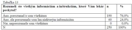 - H3 – predpokladáme, že väčšina pacientov je spokojná s poskytnutou úrovňou informácii o svojom zdravotnom stave.