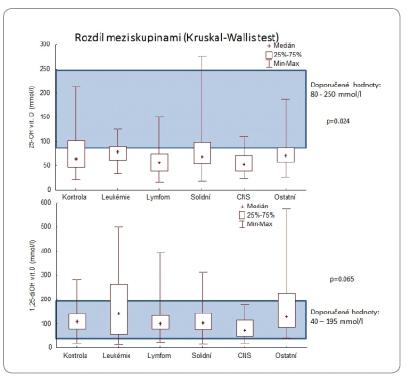 Nedostatek vitaminu D je v současné době v populaci poměrně rozšířen, podle některých výzkumů je deficit vitaminu D rizikovým faktorem pro vznik různých onemocnění, např. hypertenze, diabetu, osteoporózy, některých infekčních (tuberkulóza) a autoimunitních chorob (roztroušená skleróza, revmatoidní artritida) včetně některých onkologických onemocnění (např. kolorektální karcinom, karcinom prsu, ovaria, prostaty). Většina těchto výzkumů proběhla doposud u dospělých pacientů, situace u dětí je mnohem méně známá. Hladiny vitaminu D3 na KDO systematicky sledujeme od září roku 2010, do konce roku 2012 bylo takto vyšetřeno 219 dětí, z toho 174 pacientů s potvrzenou onkologickou diagnózou a 45 pacientů, u nichž se onkologické onemocnění nepotvrdilo = kontrolní skupinou. Vzhledem k dobře dokumentované souvislosti mezi nízkými sérovým hladinami vitaminu D a zvýšeným rizikem vzniku některých maligních onemocnění je na místě diskuze o eventuálním významu suplementace vitaminem D v prevenci těchto onemocnění. Pozitivní vliv podávání vitaminu D se však diskutuje i pro případné zmírnění některých nežádoucích účinků současné léčby maligních onemocnění (chemoterapie, radioterapie), v některých režimech je vitamin D již součástí terapeutických protokolů. Autoři prezentují pilotní data sledování hladin vitaminu D3 u onkologicky nemocných dětí na KDO FN a LF MU Brno.