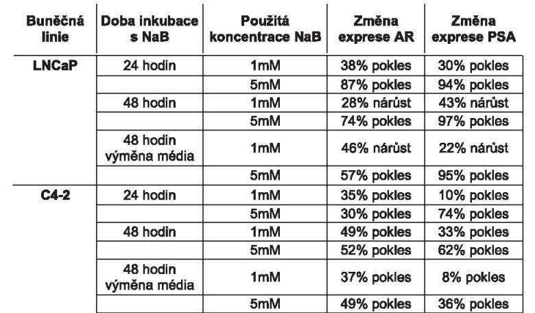 ukázala, že NaB má vliv na změnu exprese AR i PSA, a to v různé