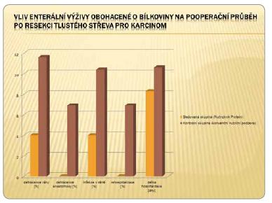 Vysoko bílkovinná perioperační nutriční podpora snižuje výskyt pooperačních komplikací a zkracuje délku hospitalizace u pacientů podstupujících resekční výkon na tlustém střevě pro kolorektální karcinom bez ohledu na jejich předoperační nutriční stav. Nutridrink Protein je pacienty subjektivně dobře snášen a jeho přínos je kladně hodnocen. Omezením výsledků je především malá skupina pacientů, projekt však dále pokračuje.