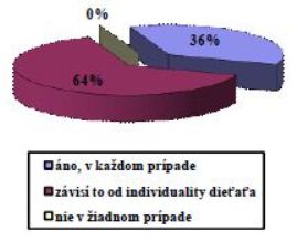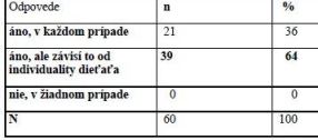 Tabuľka 5: ‘Myslíte si, že je dôležité informovať onkologicky choré dieťa primerane jeho veku a rozumovým schopnostiam o diagnóze, výkonoch a priebehu liečby ?’