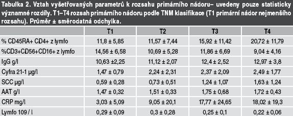 AAT, Cyfra 21-1) a CRP viz tabulka 2.