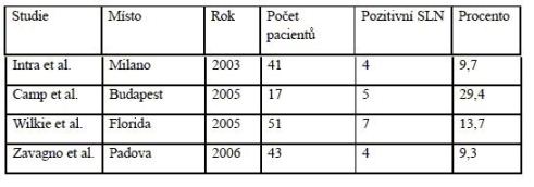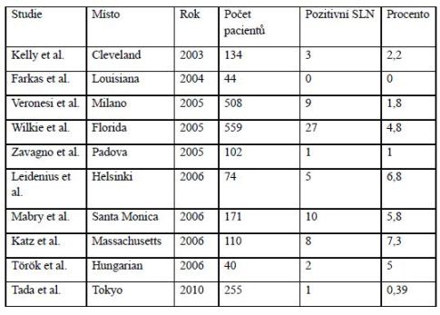Studie popisující pozitivitu SLN při finální diagnóze