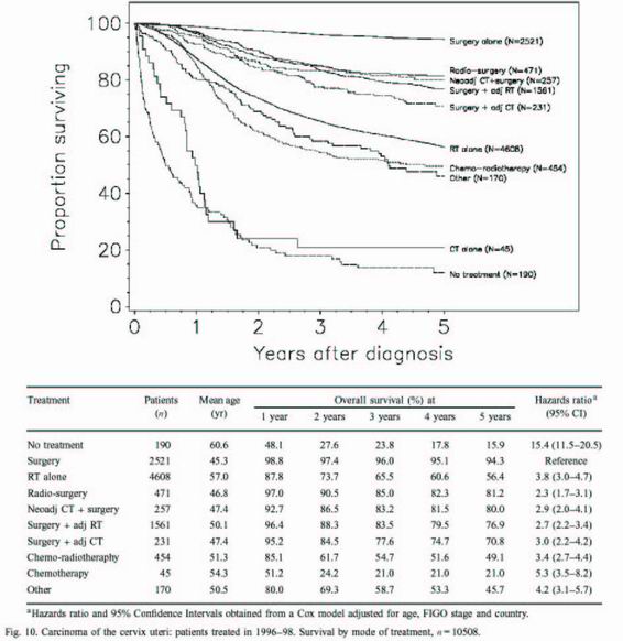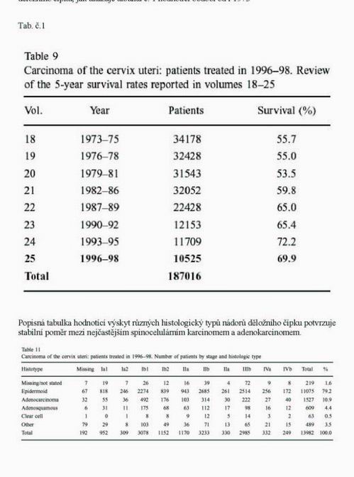 To vše se projevilo ve výrazném zlepšení přežívání nemocných léčených pro karcinom děložního čípku, jak ukazuje tabulka č. 1 hodnotící období od r 1973