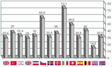 - zúčastněné země/počet zařazených pacientů: Španělsko/115, Izrael/111, Turecko/100, Skotsko/93, Řecko/81, Švýcarsko/72, Švédsko/59, Itálie/52, Česká Republika/51, Dánsko/50, Srbsko/50, Belgie/45, Island/43, Anglie/34