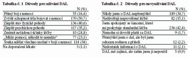 Diskuze, závěr- bylo zjištěno, že pacienti využívají 58 typů DAL metod, které dosud nebyly vědecky prověřeny