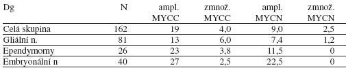 MYCC u jednotlivých mozkových nádorů pomocí FISH, DNA ploidie