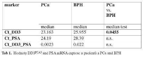 Paradoxně ale byla hladina exprese mRNApro DD3PCA3 (Cť)