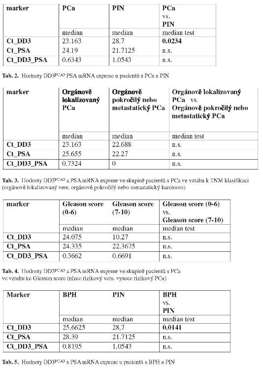 expresí DD3PCA3 a PSA mRNA (viz. tab. 4.).
