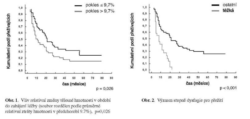 WHO, stupeň dysfagie, tělesná hmotnost před zahájením léčby a změny