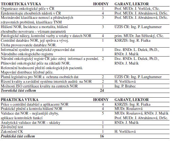 - poskytnout posluchačům vědomosti a dovednosti, které jsou potřebné pro realizaci sběru dat do Národního onkologického registru