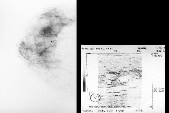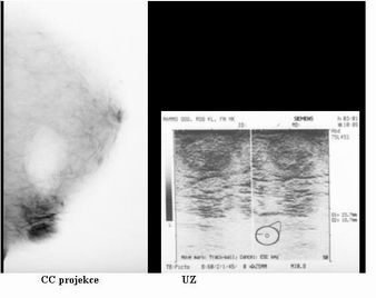 mamografie, ve 2 případech bylo provedeno pouze sonografické