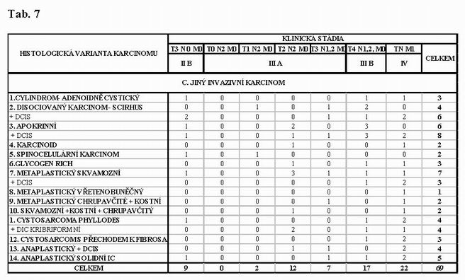 jednotlivé histologické varianty jsou uvedeny v Tab. 7.