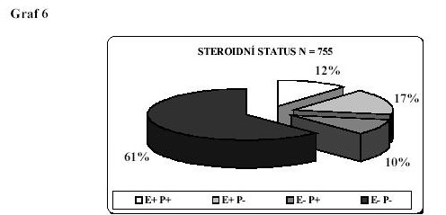 Výsledky steroidního statusu souboru 755 pacientek s pokročilým karcinomem mléčné žlázy jsou uvedeny v Graf 6, hodnoty jsou vyjádřeny v %.