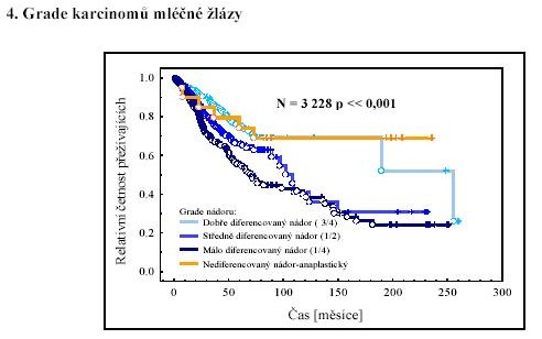 V analýze byl potvrzen prognostický potenciál hodnoty gradu nádoru a typu hormonálních receptorů v nádorové tkáni ve vztahu k PFI, OS. Relativně kratší PFI, OS je hodnocen u pacientek s vyšším gradem nádoru.