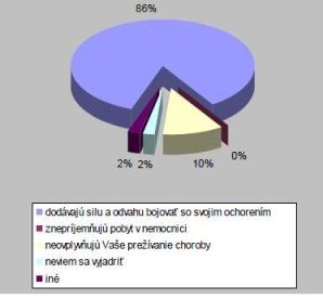 - H4: Predpokladáme, že na väčšinu onkologicky chorých pacientov sestry svojim prístupom vplývajú pozitívne a optimisticky.