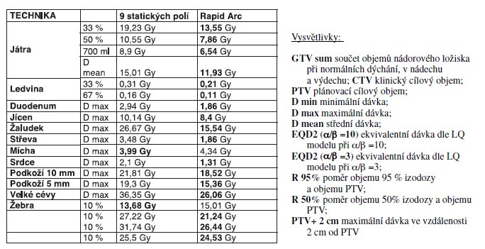 Tabulka 4: Srovnání technik z hlediska dávek v rizikových orgánech