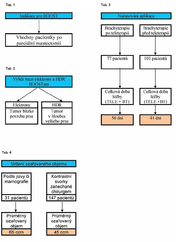 Na našem oddělení indikujeme boost ( tab. 1) téměř rutinně jako integrální součást ozáření prsu u většiny pacientek, které podstoupily parciální mastectomii pro zhoubný tumor.