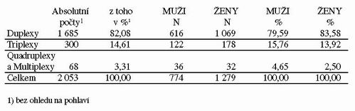 V Masarykově onkologickém ústavu v Brně byl proveden v letech 1976 – 2001 alespoň 1 druh protinádorové léčby u 2 053 onkologicky nemocných s VM. Na pacienty se 4 a více primárními ZN připadá 3,3% (N=68) z celého souboru (tabulka č.1).