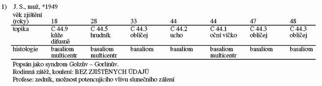 - Mnohočetný výskyt NMNK (resp. kožních basaliomů) nelze bagatelizovat zejména pak u mladých pacientů. Je výhodné doplň ující vyšetření genetikem, což může ve svém důsledku znamenat pro pacienta prospěšnou změnu v dříve uznávaném léčebném postupu.