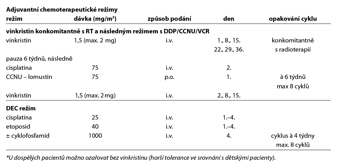 • radioterapie + (neo)adjuvantní chemoterapie s PCV (1),