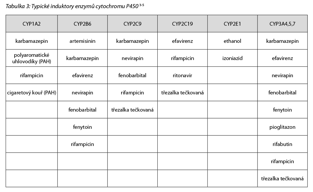 V případě indukce vlivem opakovaného podání jednoho léčiva (např. karbamazepin, rifampicin, typické induktory viz níže v tab. 3) dojde k přechodnému zvýšení exprese enzymu. Tím jsou substráty metabolizovány rychleji a plazmatické koncentrace jsou pak nižší (např. sunitinib + dexametazon/rifampicin/třezalka tečkovaná). To se pak může projevit nižší intenzitou efektu a/nebo selháním terapie.