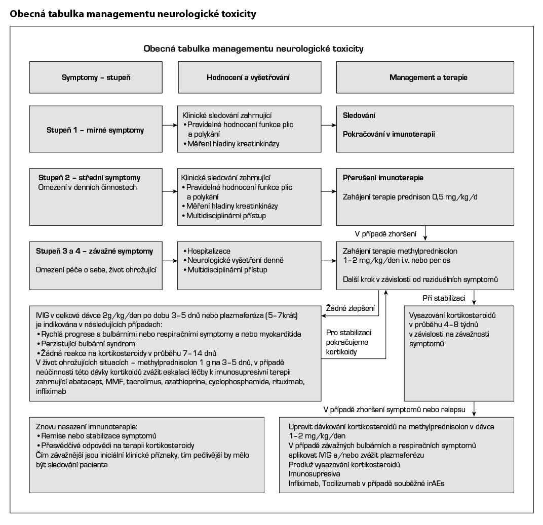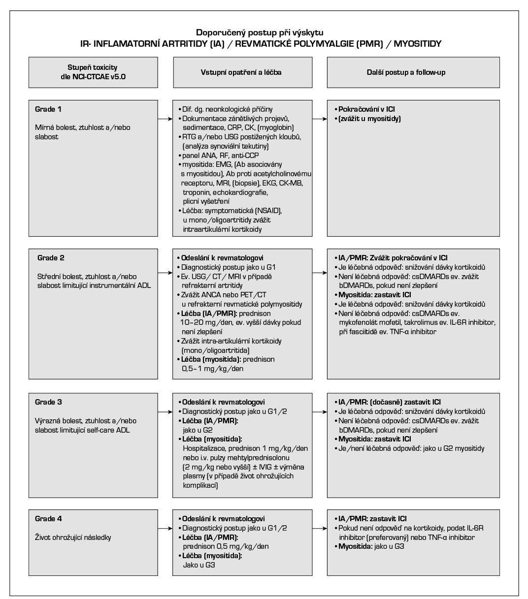 diagnostika a adekvátní léčba. Doporučené postupy odborných společností (ASCO, ESMO, EULAR, SITC a NCCN) nejsou zcela konzistentní. Zde uvedená doporučení se opírají o pravidelně aktualizované doporučení NCCN z roku 2025.