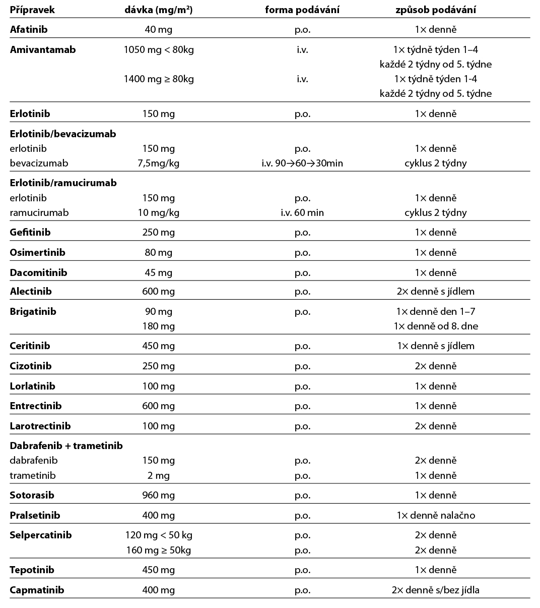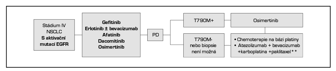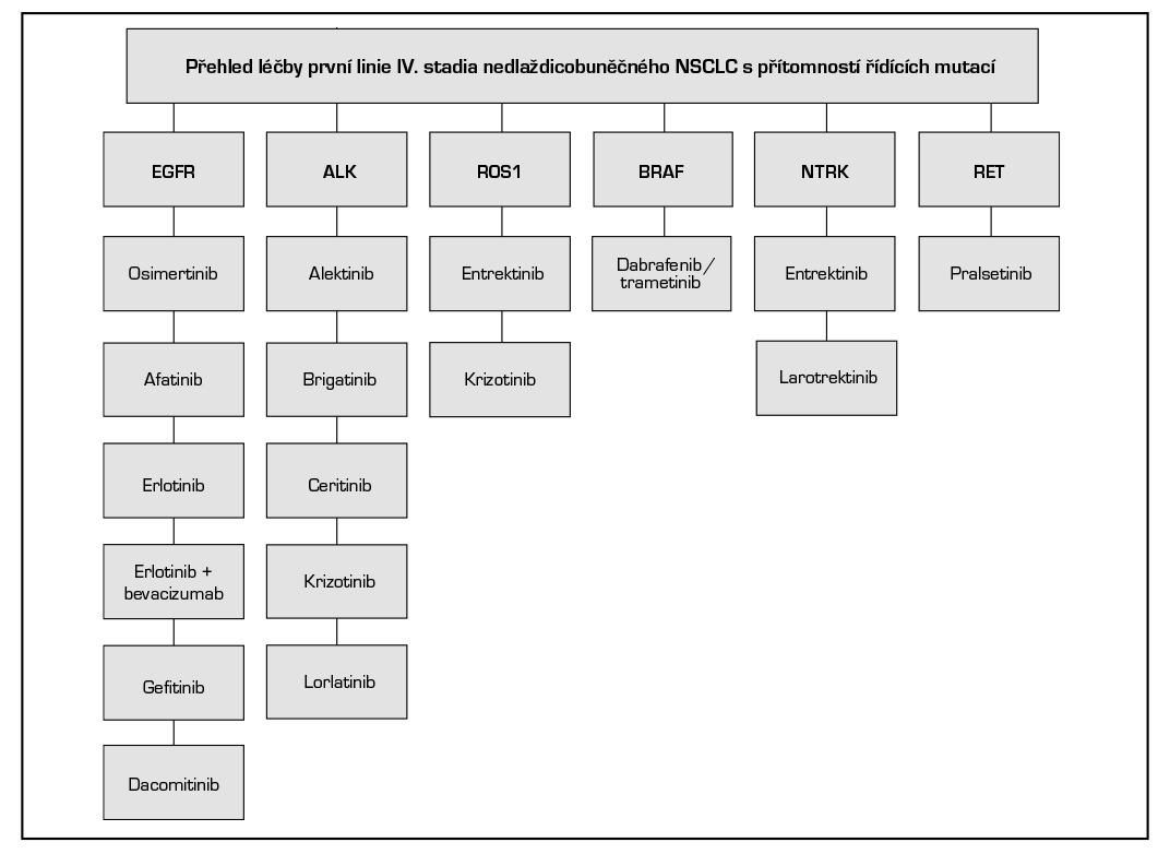 U nemocných s prokázanou aktivační mutací EGFR jsou v 1. linii léčby indikovány inhibitory tyrozinkinázy EGFR.