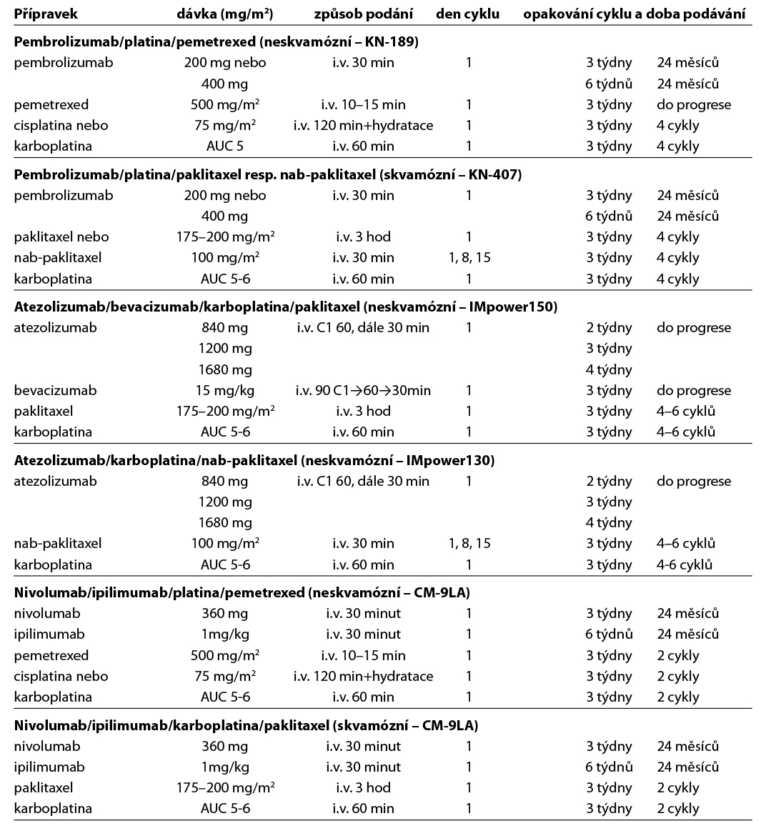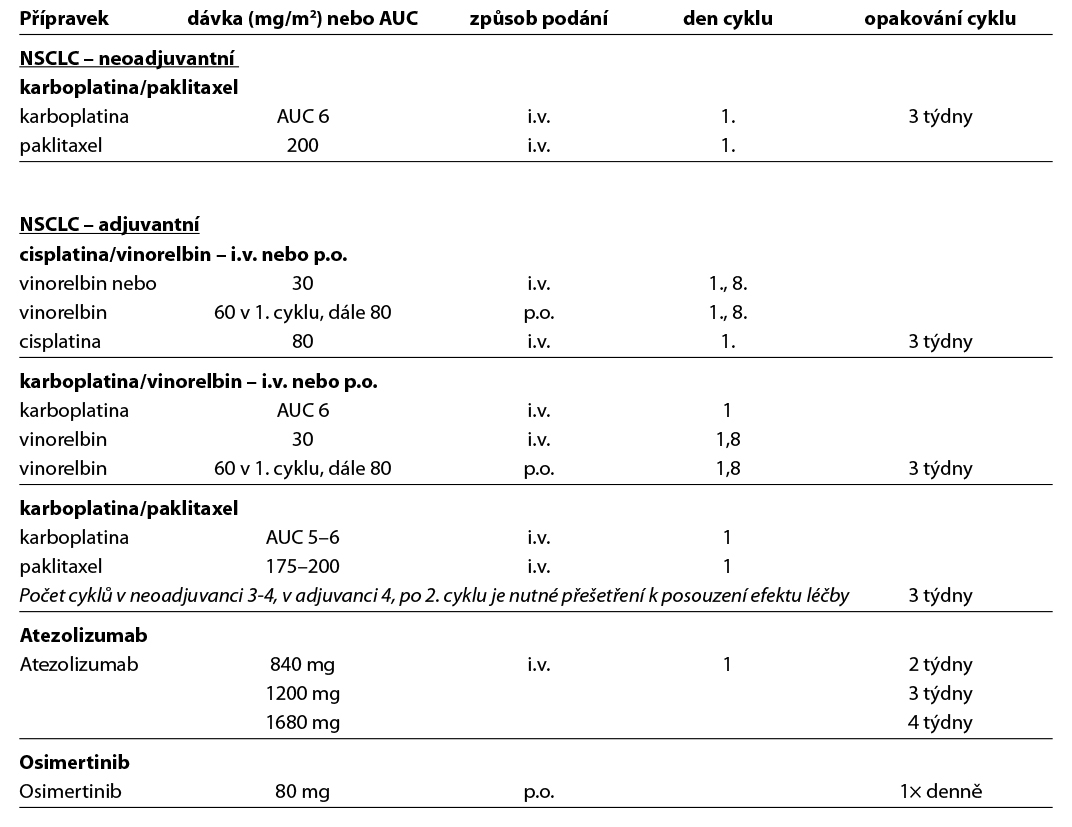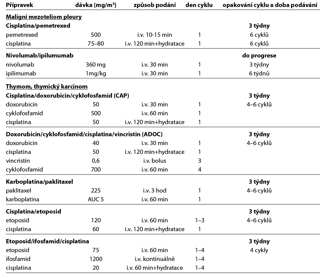 8. 6 Léčebné přípravky použité v léčbě nádorů plic, maligního mezoteliomu pleury a maligního thymomu a jejich doporučená schémata