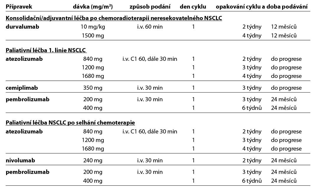 Atezolizumab** (bez ohledu na míru exprese PD-L1) v monoterapii nebo v kombinaci s bevacizumabem, paklitaxelem a karboplatinou, může být u pacientů s aktivačními mutacemi EGFR nebo ALK pozitivním NSCLC indikován po selhání vhodných možností cílené léčby.