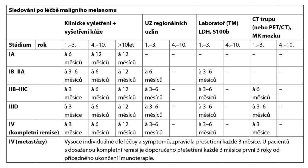 Cíle sledování pacienta po onkologické léčbě melanomu