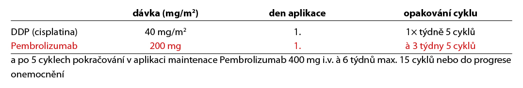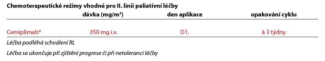 U pacientek s progresí po předchozí léčbě s platinovým derivátem, které nebyly předléčeny imunoterapií, je ke zvážení imunoterapie s Cemiplimabem (po schválení revizním lékařem). Indikace tohoto preparátu je nezávislá na PDL-1 statusu.