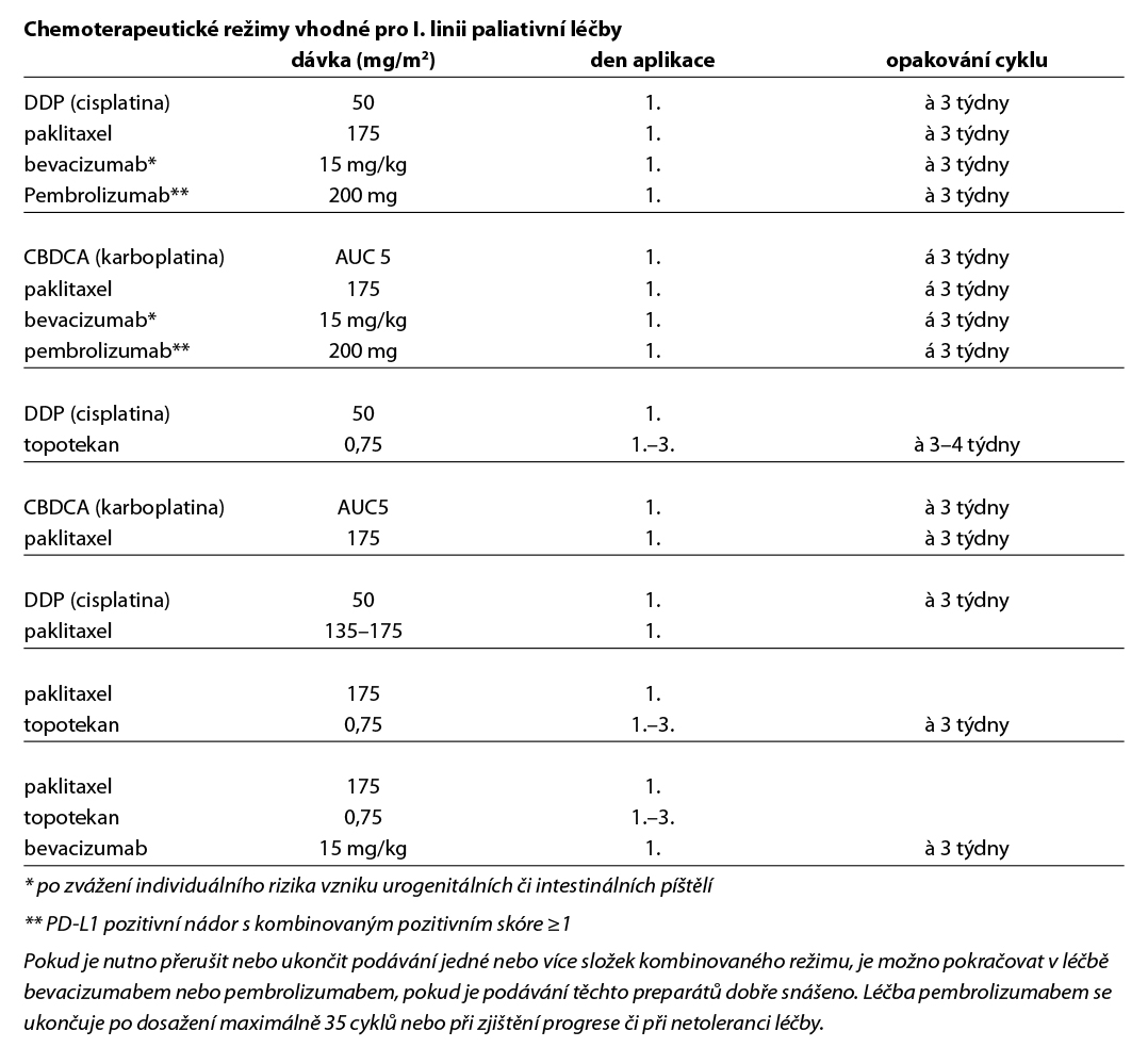 • Paliativní CHT +/- bevacizumab* +/- pembrolizumab** +/- pánevní RT***.