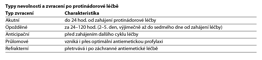 29. ZÁSADY PREVENCE A LÉČBY NEVOLNOSTI A ZVRACENÍ PO PROTINÁDOROVÉ LÉČBĚ