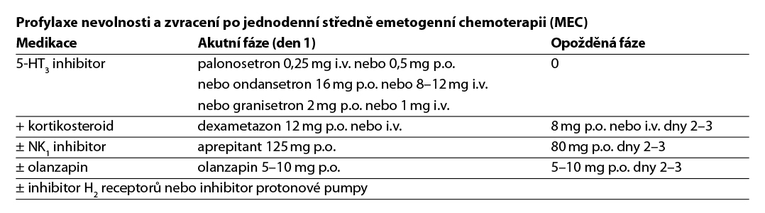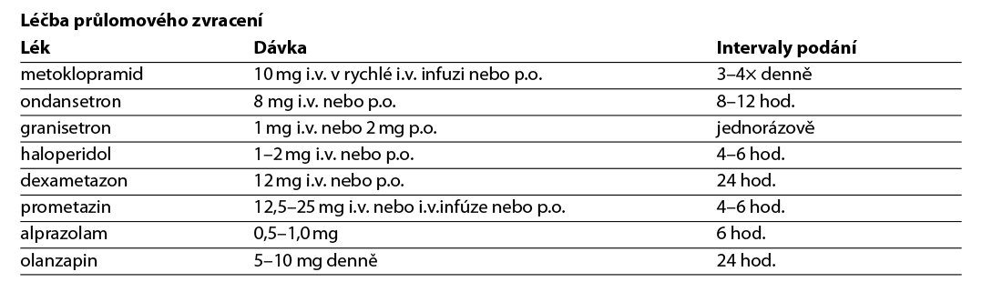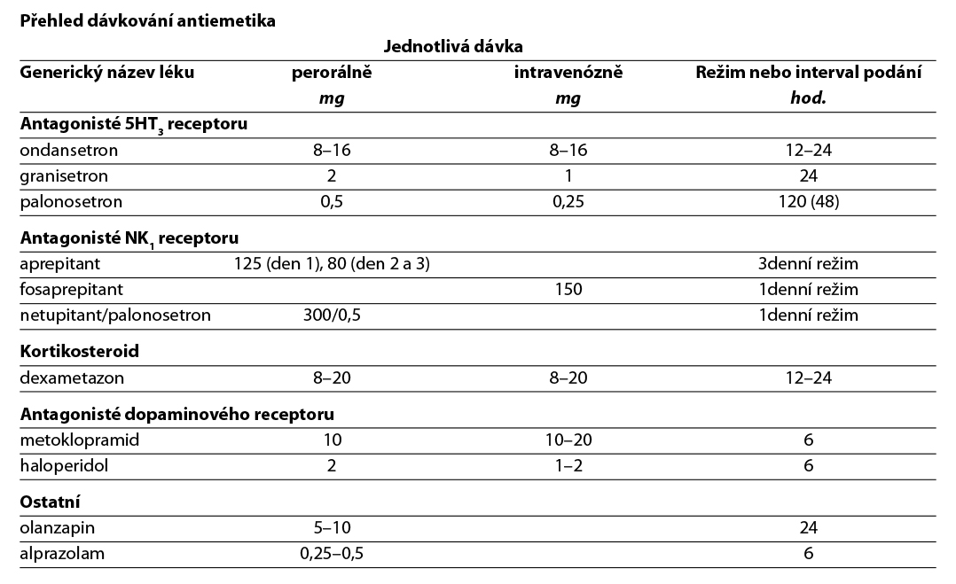 • profylakticky je doporučeno antiemetika podat 30–60 minut před zahájením chemoterapie