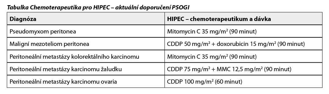 U peritoneálních metastáz kolorektálního karcinomu je úroveň důkazů o efektivitě CRS/HIPEC vysoká, PSOGI však tyto procedury považuje za terapeutický standard pouze u malé a střední oligometastatické infiltrace peritonea, vždy v kombinaci se systémovou léčbou.