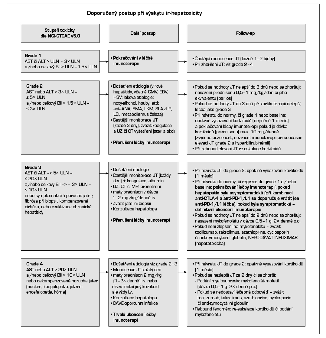Všichni pacienti by měli mít vyšetřeny jaterní testy před zahájením léčby imunoterapií a pak pravidelně v jejím průběhu.