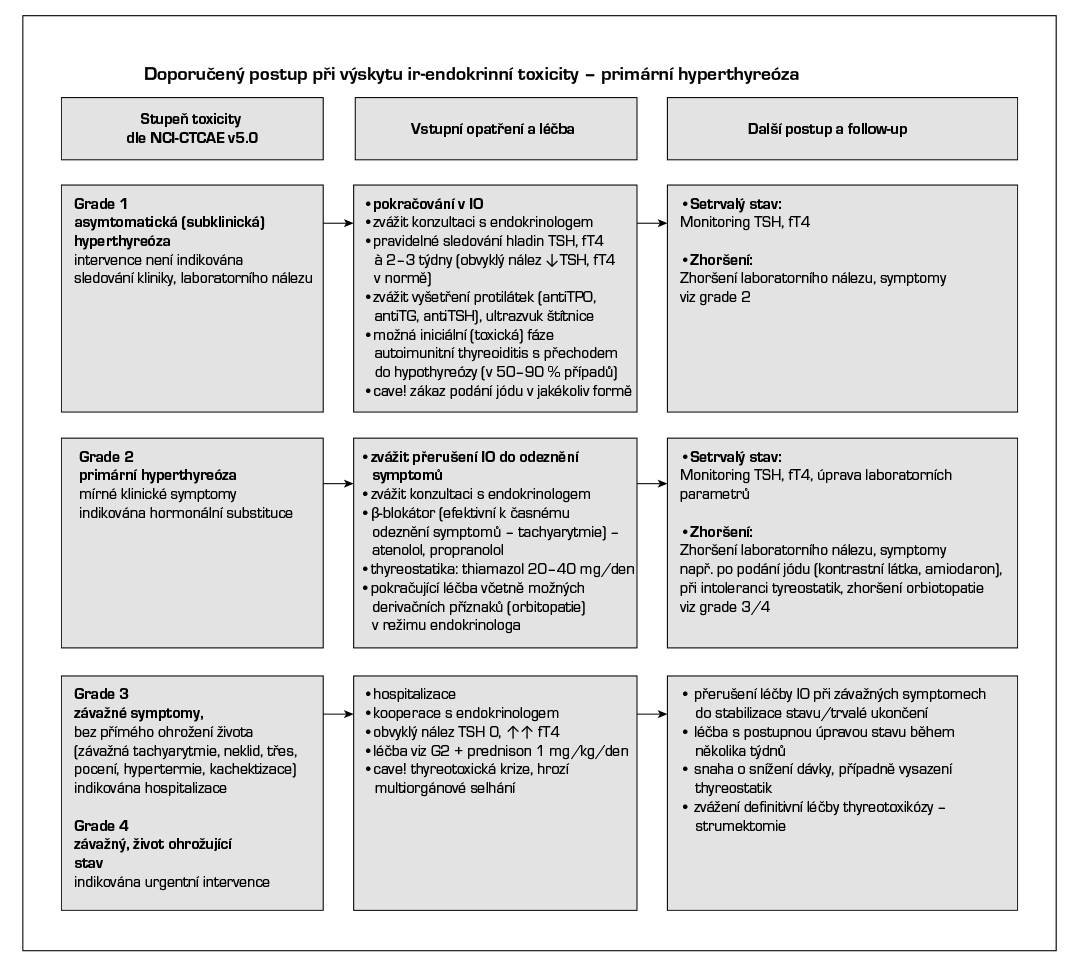 Ir – primární hypothyreóza je nejčastější endokrinopatií a vyskytuje se u 6–9 % pacientů léčených anti-PD1 a/nebo anti-PDL-1 terapií, u 4 % v případě anti-CTLA4 léčby a u ≤ 16 % v případě kombinované terapie anti-PD(L)-1 – anti-CTLA4 terapie. Většina případů se objeví do 3 měsíců od zahájení léčby.