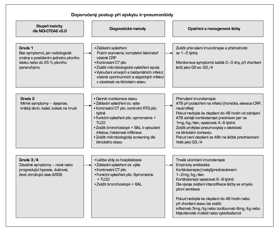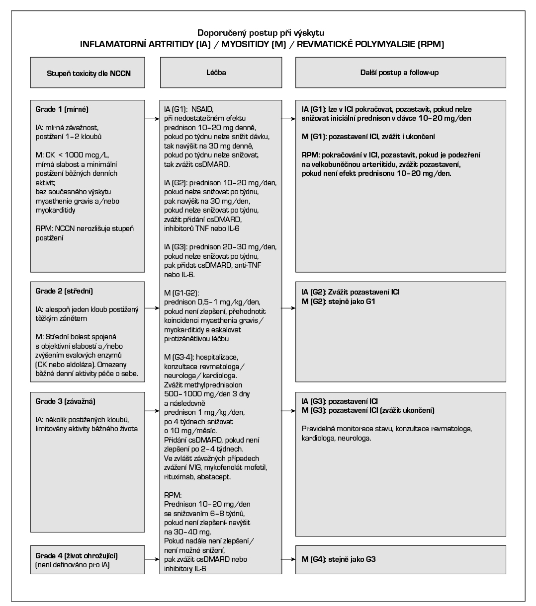 diagnostika a adekvátní léčba. Doporučené postupy odborných společností (ASCO, ESMO, EULAR, SITC a NCCN) nejsou zcela konzistentní. Zde uvedená doporučení se opírají o pravidelně aktualizované doporučení NCCN z roku 2025.